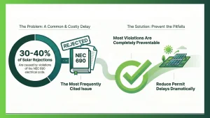 Picture this scenario. You’ve designed what seems like a perfect solar installation, submitted your permit application, and waited weeks for approval. Then comes the dreaded email—rejection due to NEC 690 permit violations.